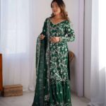 Be the first to review “Women’s Chinon Silk Embroidery Sequence Work Straight Kurti With Sharara Suit and Dupatta Set”
